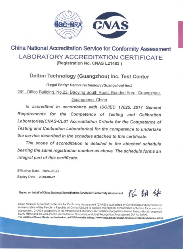 华体会·体育-华体会(中国) 检测中心(以下简称“广合科技检测中心”)顺利通过中国合格评定国家认可委员会(“China National Accreditation Service for Conformity Assessment”, CNAS)的认可,成功获得CNAS认可标识和认可证书(注册号:CNAS L21463),标志着我司在检测技术能力和管理水平上迈上了新的台阶。