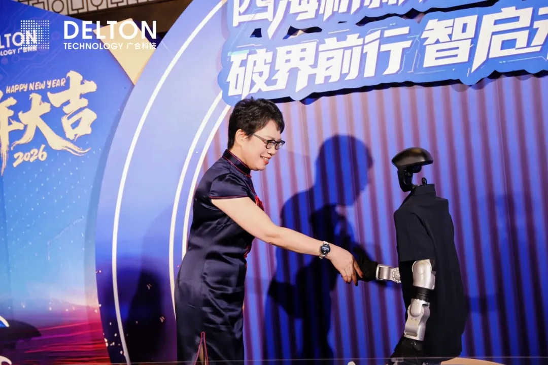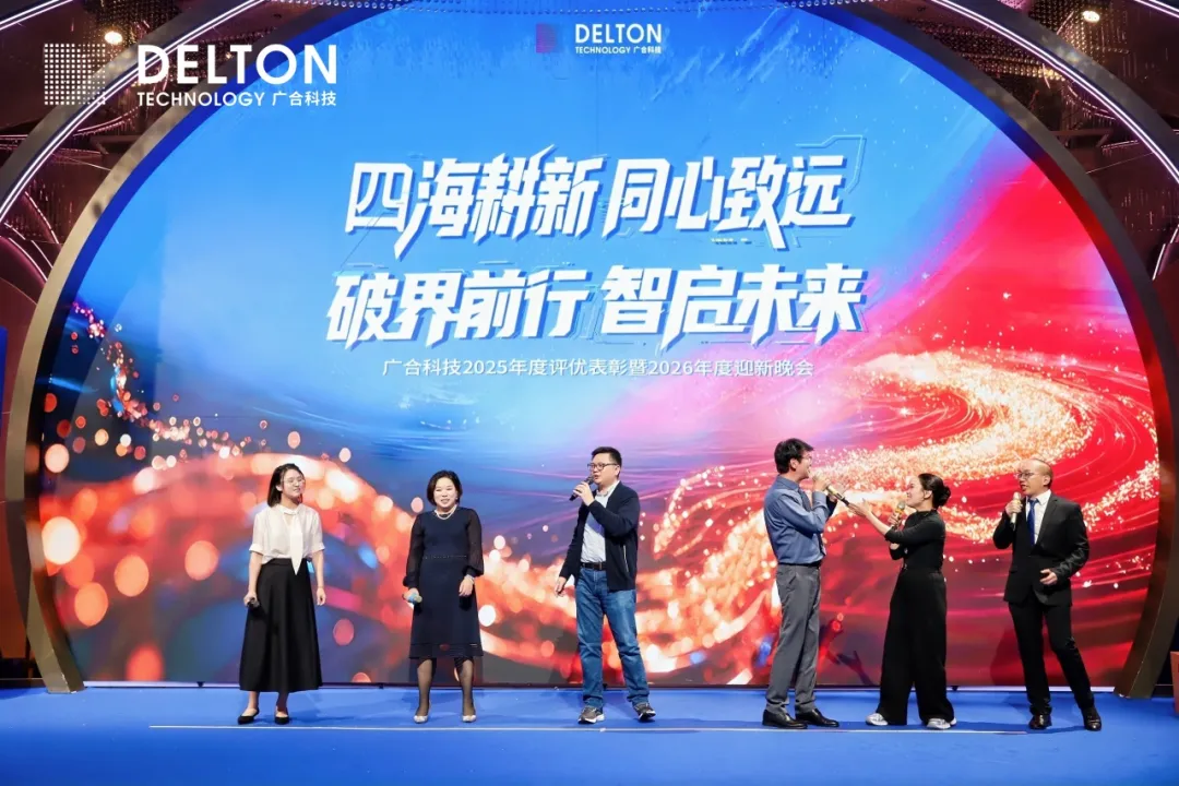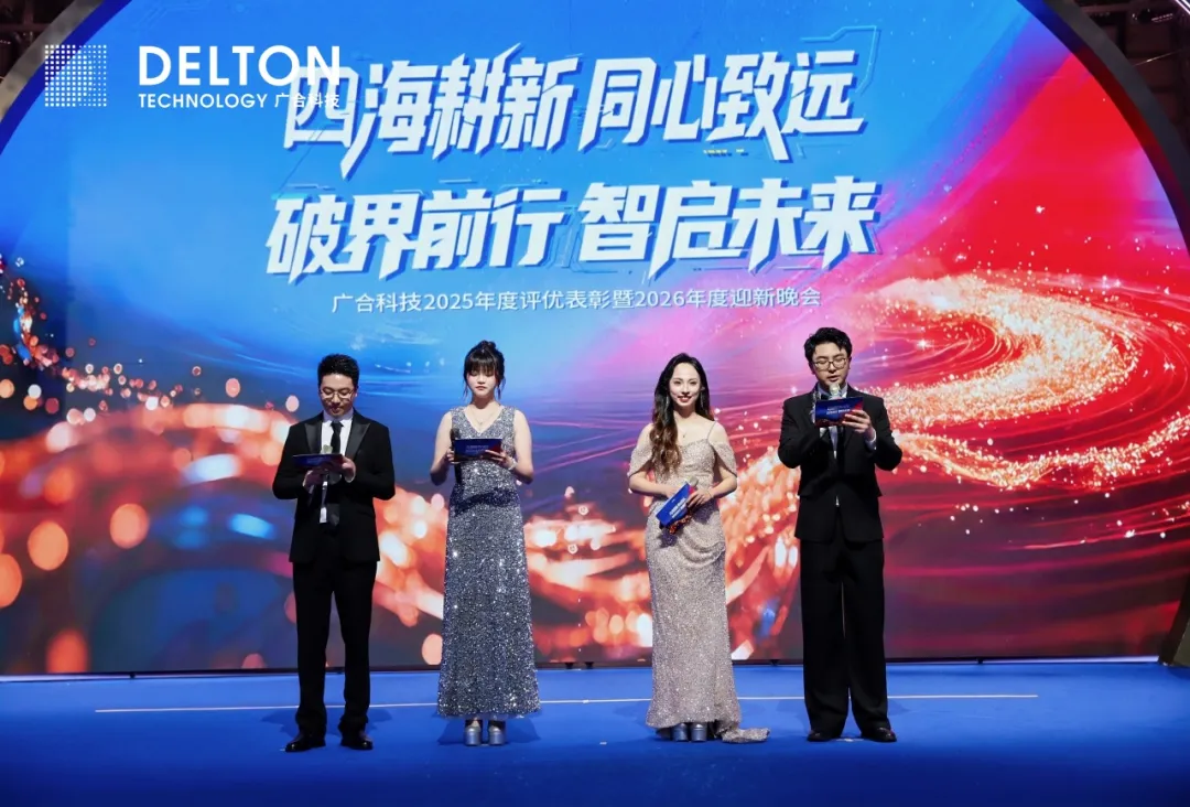 2026年2月14日晚,广合科技新年晚会隆重举行。集团董事长肖红星、董事长夫人刘锦婵女士、集团总经理曾红女士等领导,与来自广州厂、东莞车间的近700名广合家人欢聚一堂,共襄盛典。晚会以“四海耕新,同心致远;破界前行,智启未来”为主题,融战略宣导、荣誉表彰、文艺汇演、幸运抽奖于一体,既深情回望2025年的奋斗足迹,也铿锵吹响2026年的出征号角。