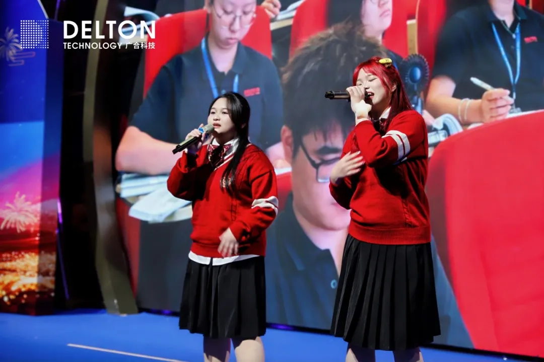 上菜时分,文化开席。精彩节目轮番登场,各绽光彩。来自各部门的员工代表献上歌曲串烧《奋斗者》,唱出“同心致远”的深情共鸣;员工代表朗诵《同心致远 跨越山海》,一字一句道出最柔软的支撑;管培生代表与人型机器人并肩共舞《APT》,机械臂划出精准弧线,青春舞步热烈奔放——这不是表演,是广合“智启未来”的生动预演;最后,领导代表合唱《明天会更好》,将全场气氛推向最高潮。