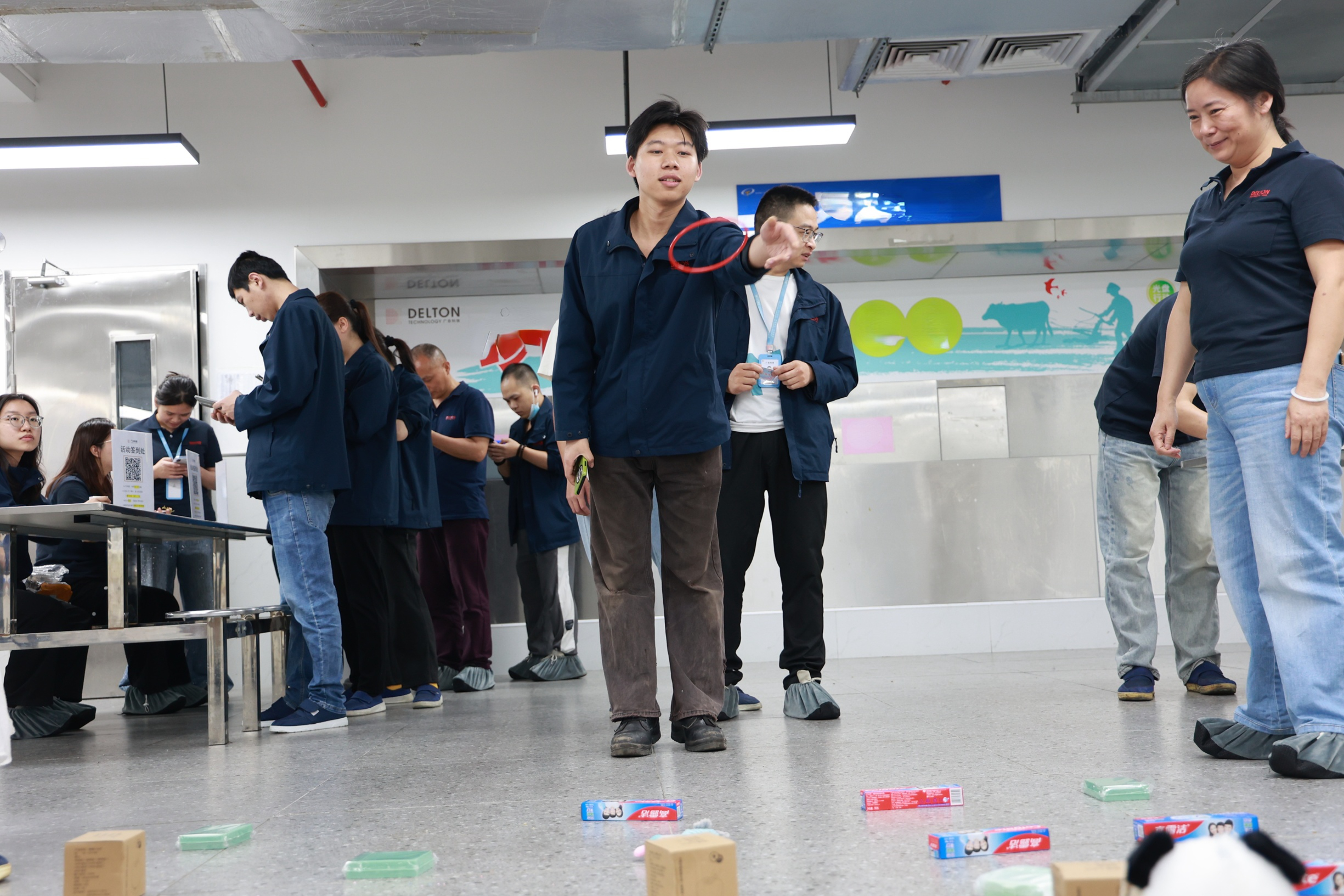 活动刚开始,签到处就热闹非凡。每人两个套圈,瞄准心仪的小礼品随手一掷,欢笑声瞬间点燃了全场气氛。